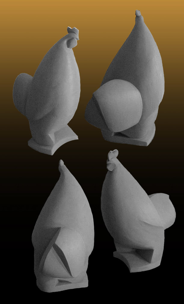 Bantam Chickens have small full bodies, and their feathers cover their feet like trouser bottoms. The glory of chickens is, for me, their comic beauty. Also their bodies seem never to forget from where they came. One way or another, the elliptical curve of an egg will present itself, disappearing and reappearing in quickly reconfigured plumage.