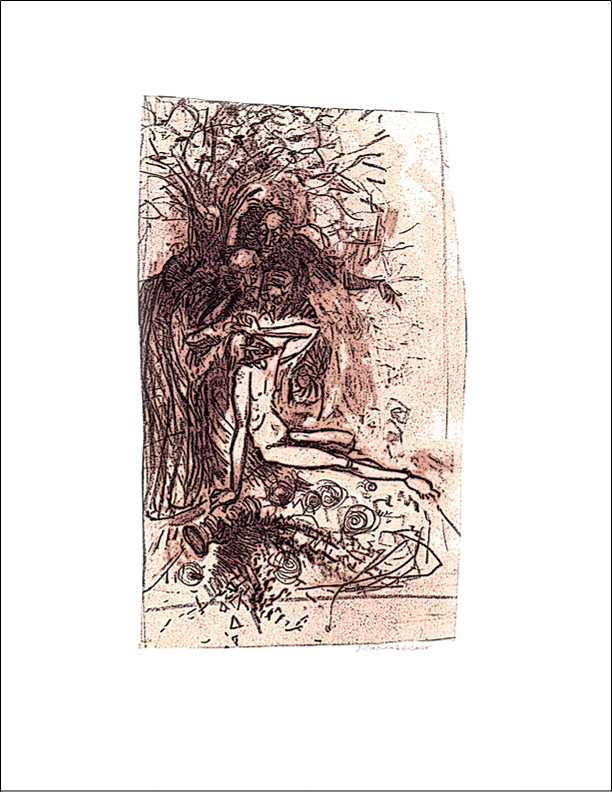 This was originally a Christmas card. Now poster size, it shows the hard edges, made by pen, as torn edges which adds a texture that I like. As is apparent my two distinct illustration styles are representational and figurative though sometimes a blend of both.